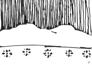 Drawing is part of Leukefeld’s daily practice. These ink on paper drawings are fast and intense responses to events, personal and global.