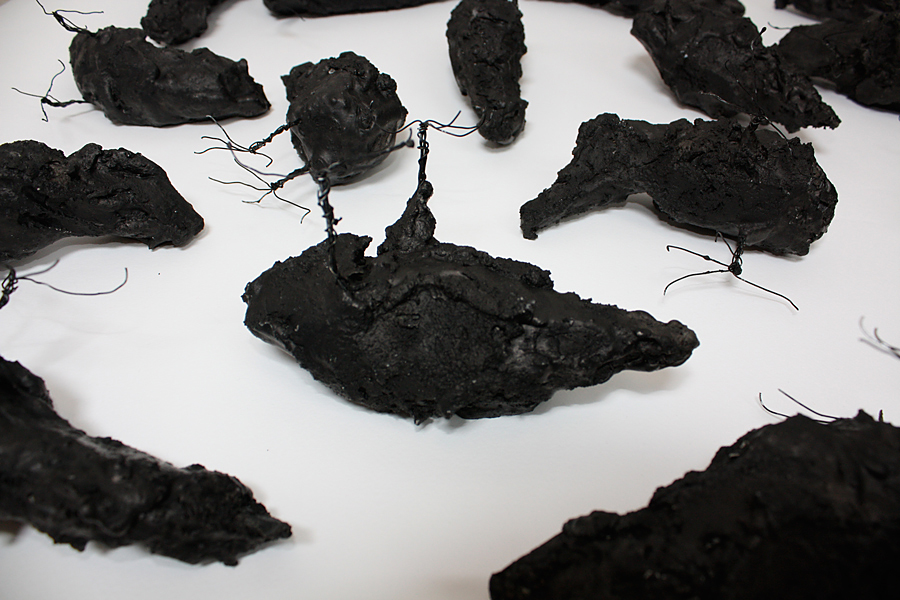 Blackbirds (Amseln), 12/2013. Paper, wire, concrete, dried tree; 250x150x150 cm.
