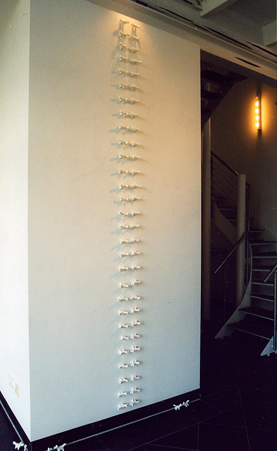 Beggars or choosers, 02/2003. Japanese modeling clay, 64 pieces, each 6cm in length. Solo show Kunstverein Region Heinsberg e.V.